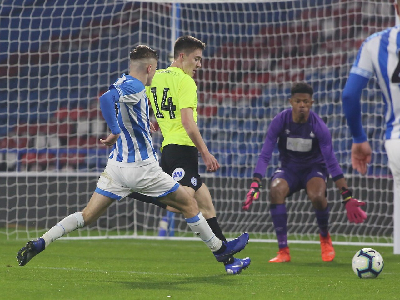Match pictures from the FA Youth Cup Third Round tie against Huddersfield Town Under 18s at the John Smiths Stadium, Wednesday 5th December 2018.