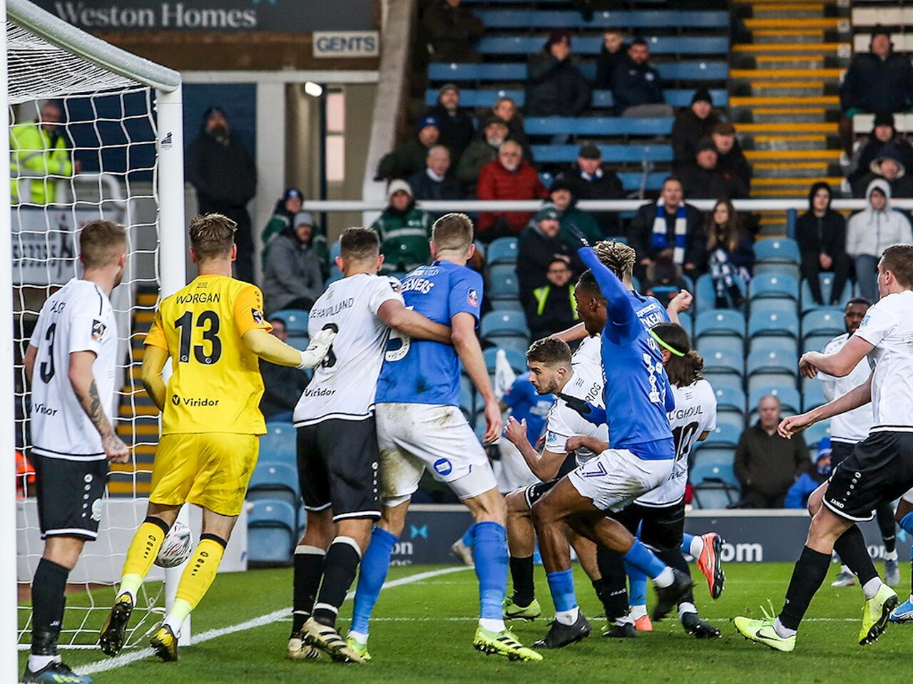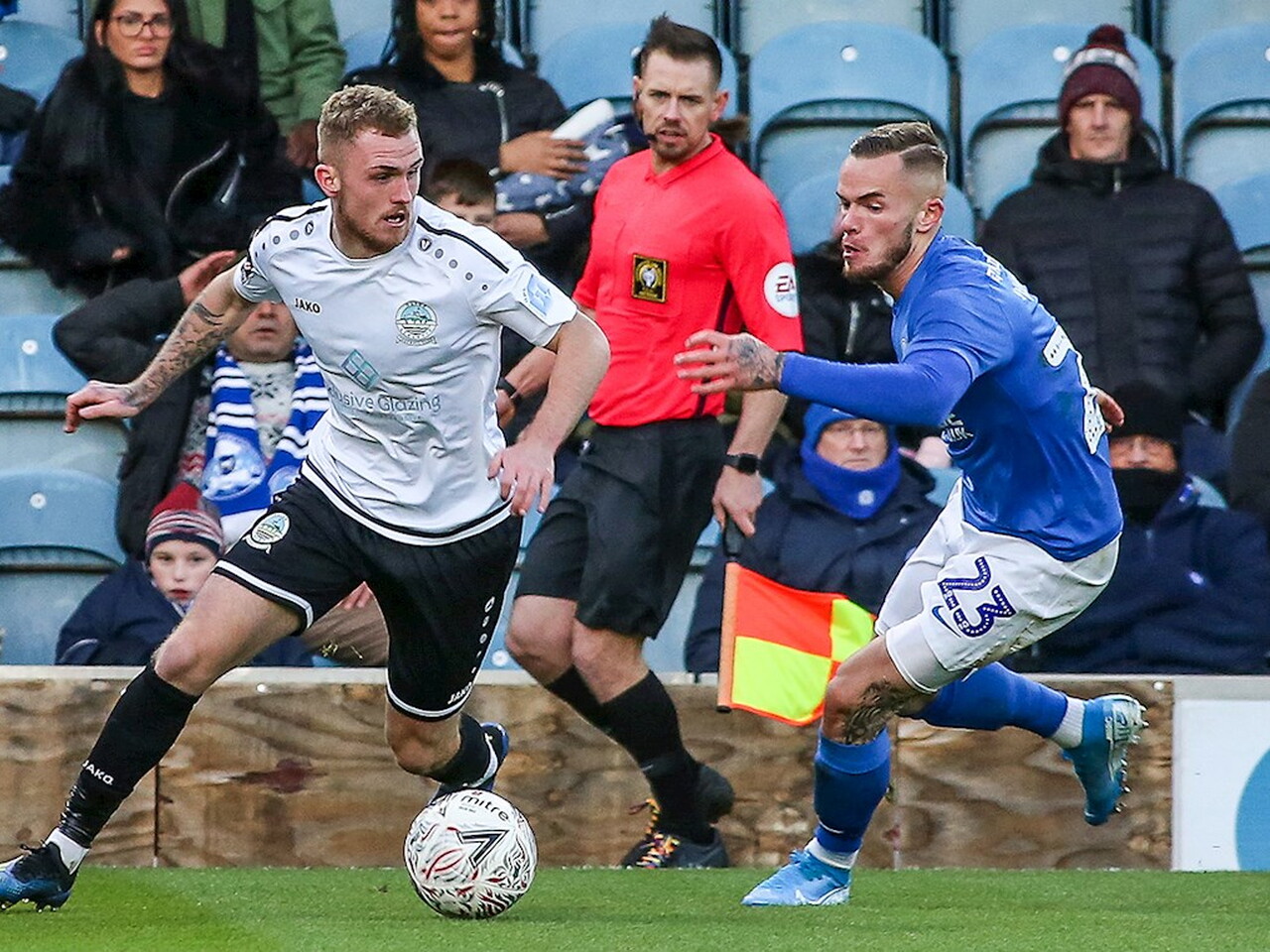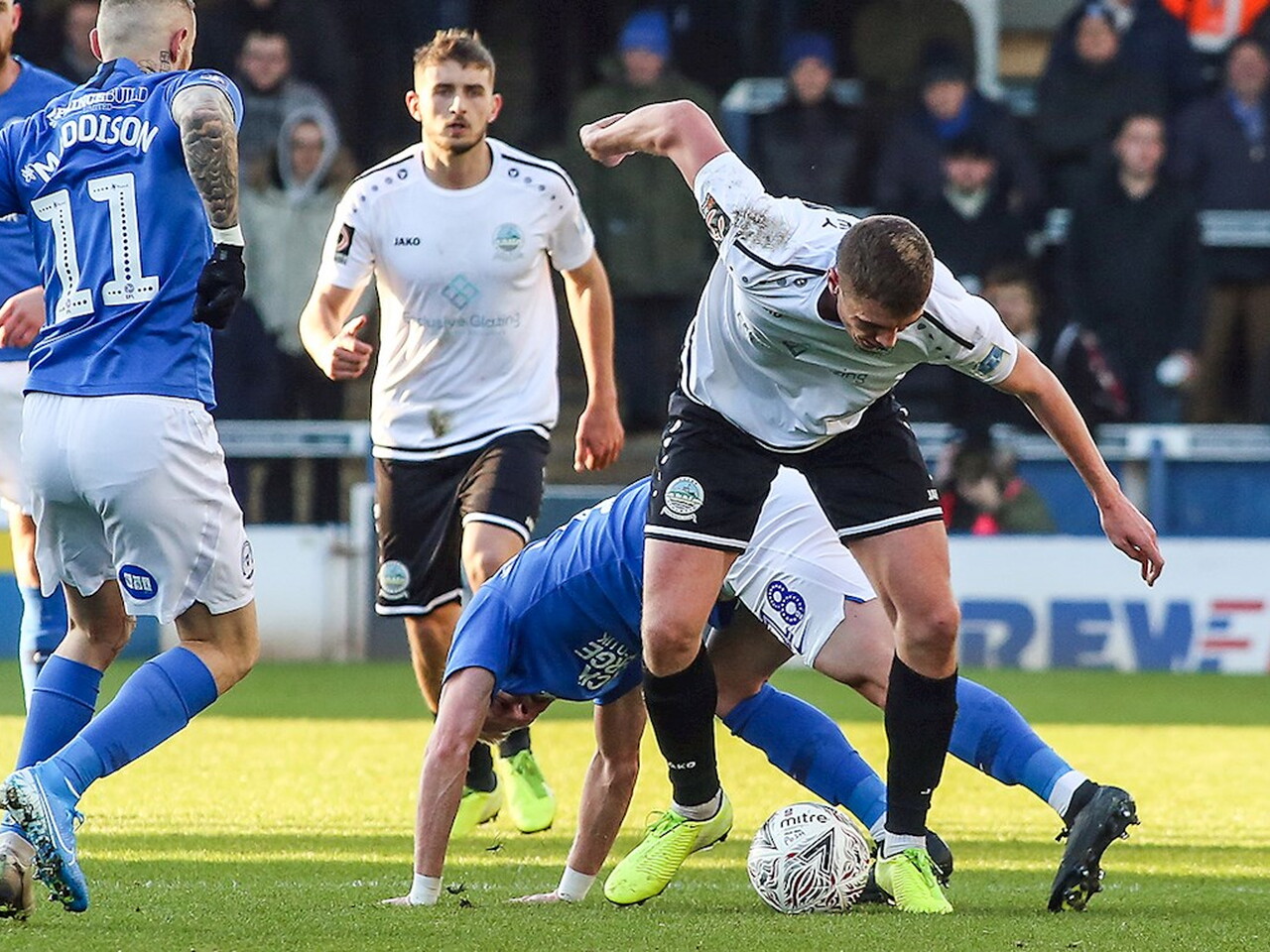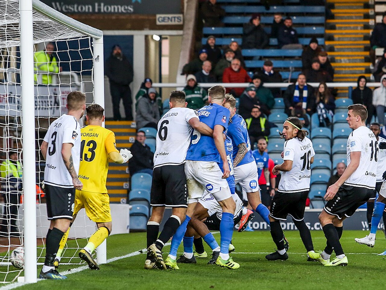 Match pictures from the Emirates FA Cup Second Round against Dover Athletic at the Weston Homes Stadium, Sunday 1st December 2019.