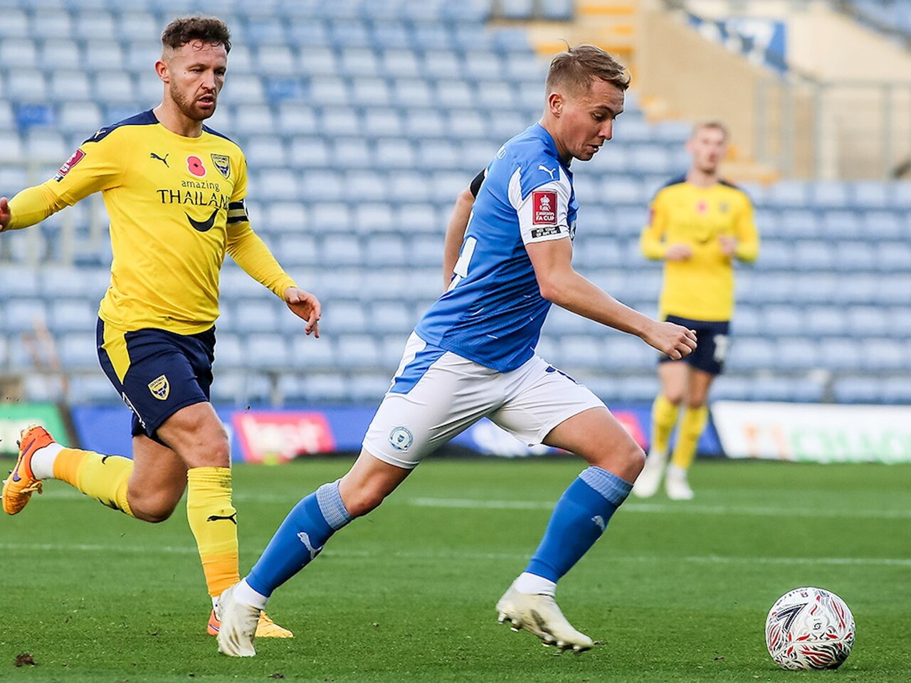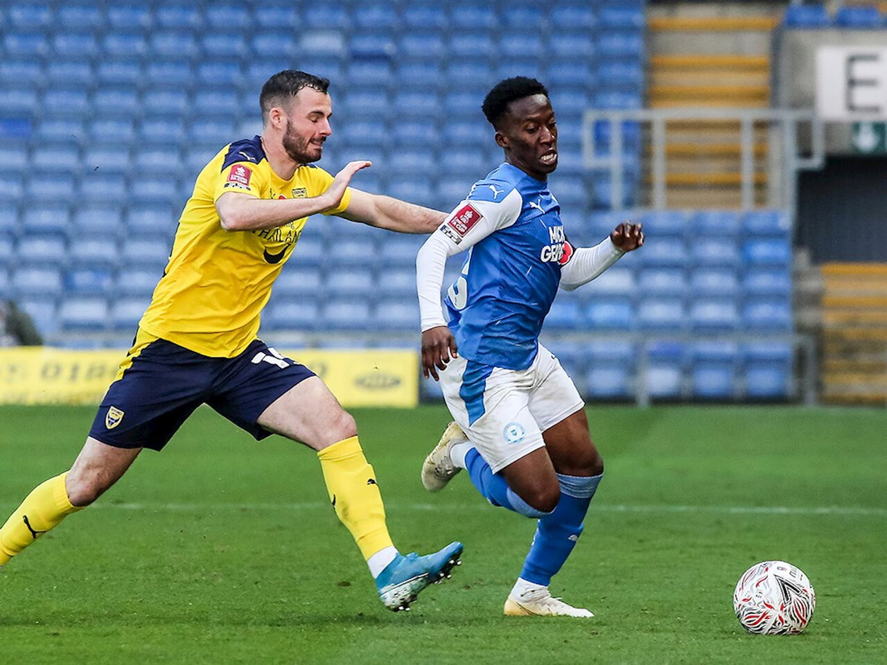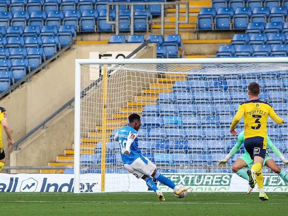 Match pictures from the Emirates FA Cup First Round tie against Oxford United at the Kassam Stadium, Saturday 7th November 2020.