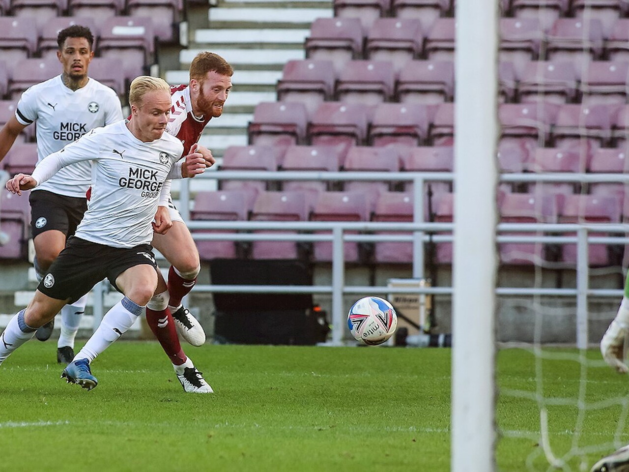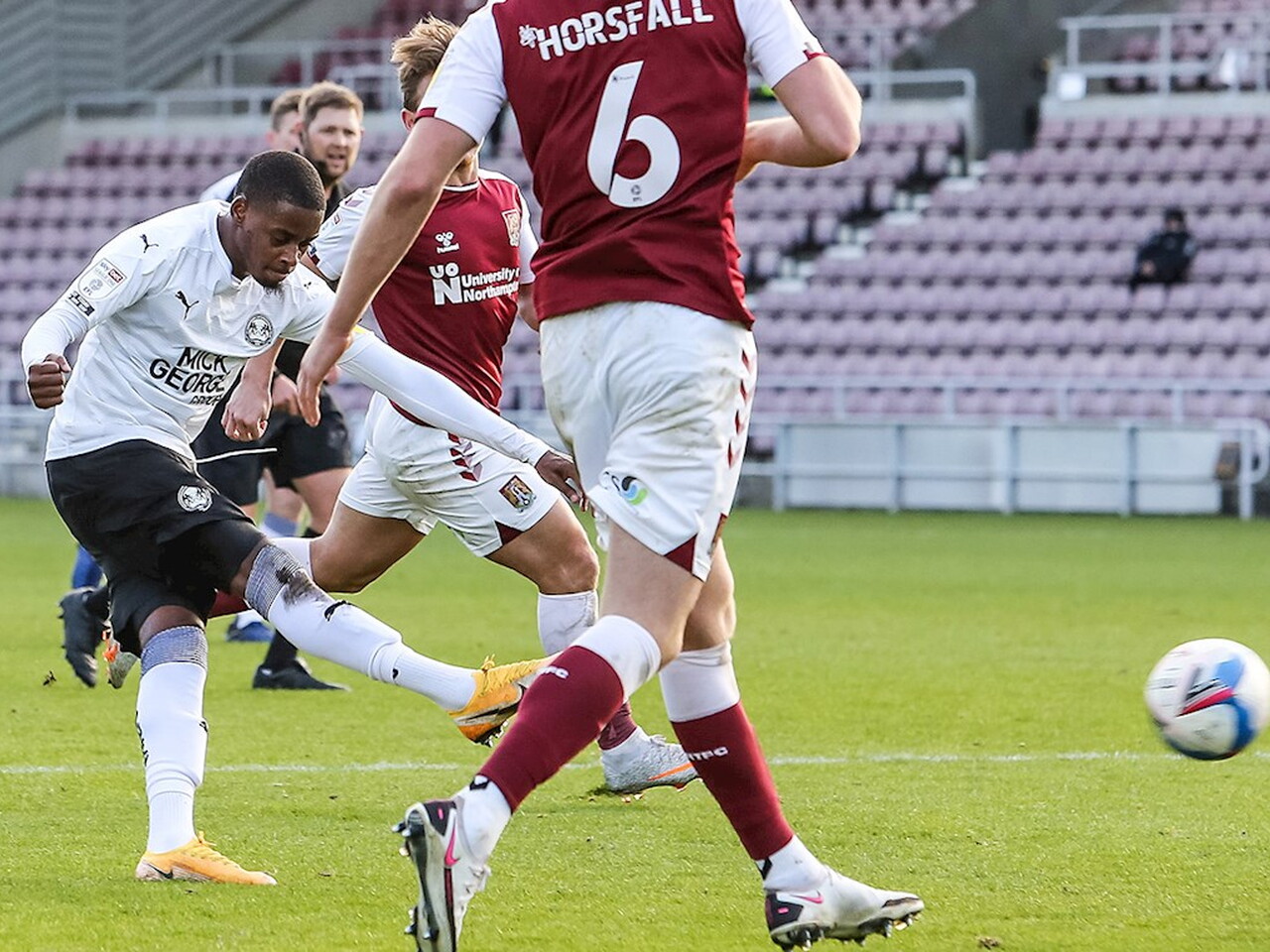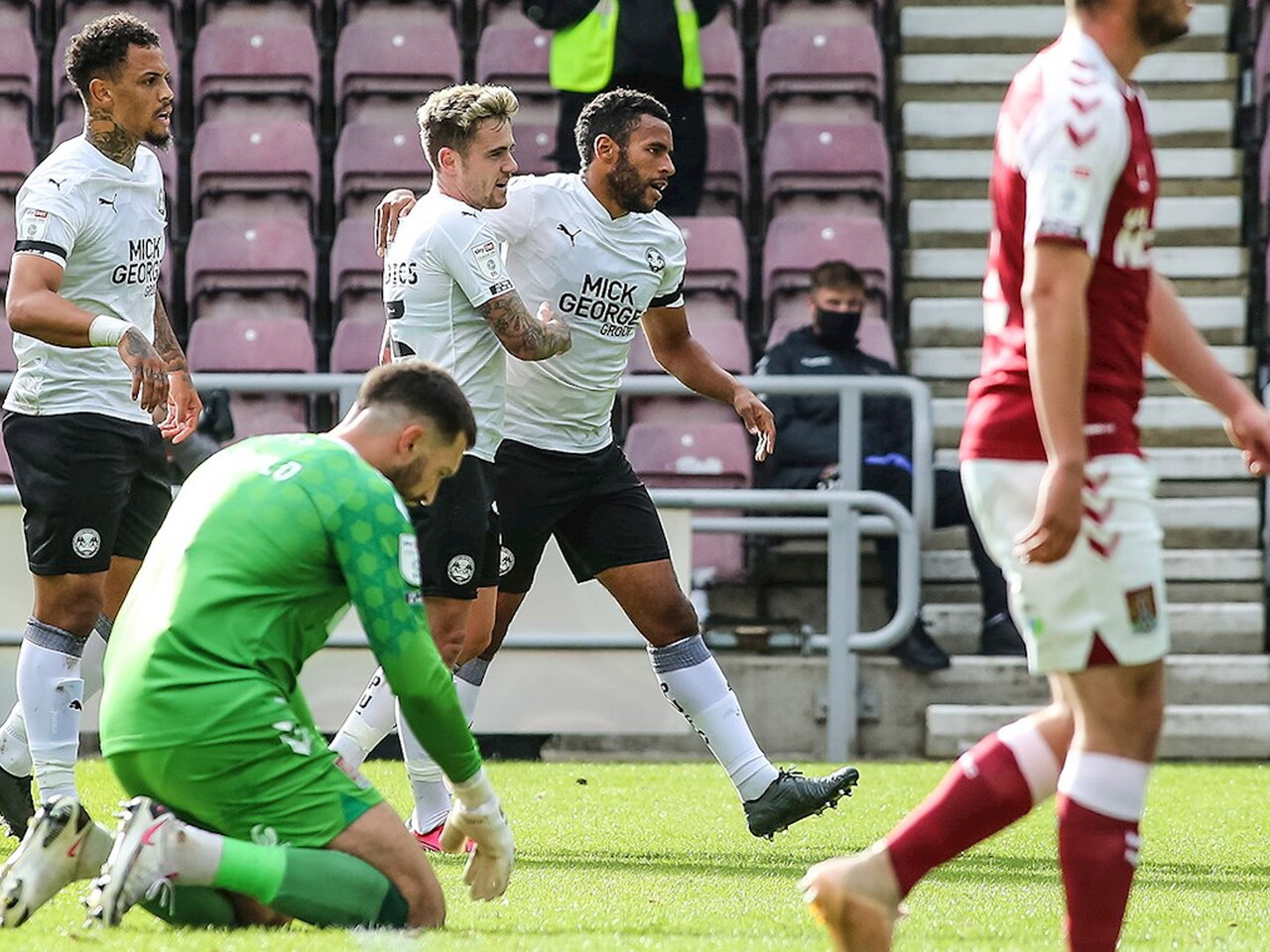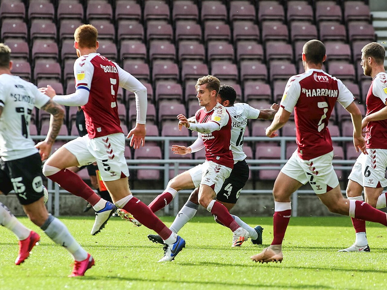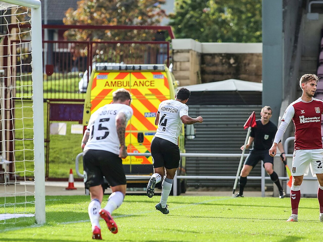Match pictures from the Sky Bet League One fixture against Northampton Town at the PTS Academy Stadium, Saturday 10th October 2020.