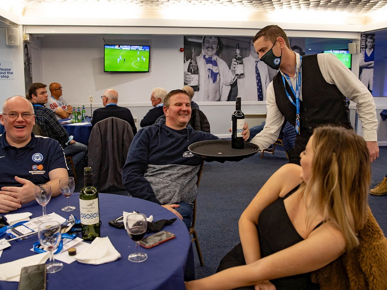 Current government guidelines decree that supporters cannot watch matches at the Weston Homes Stadium (despite the detailed protocols produced by the football club showing it can be done safely), but on Saturday, just under 50 diners were able to enjoy pre-match hospitality before watching the action on TV screens.