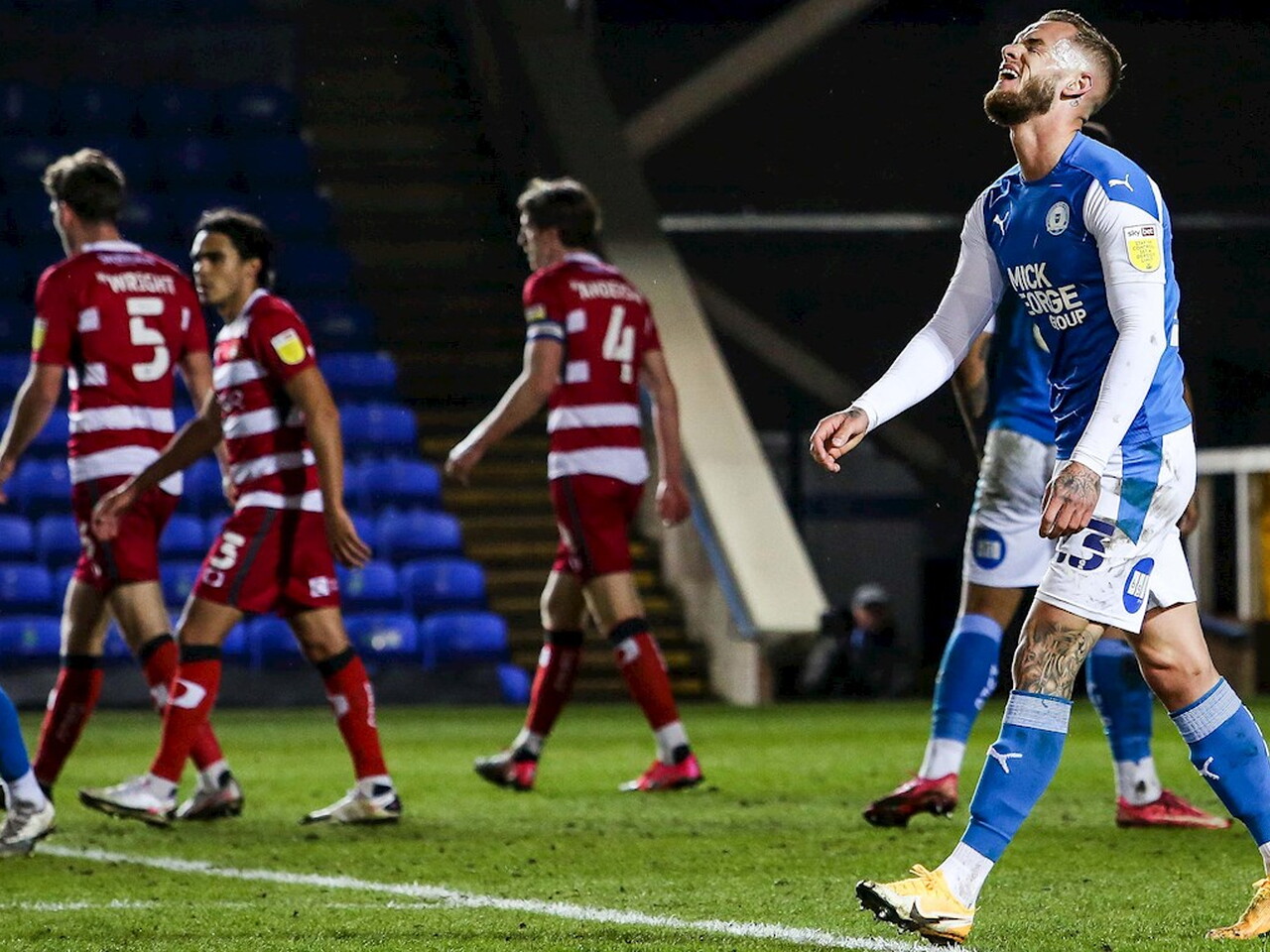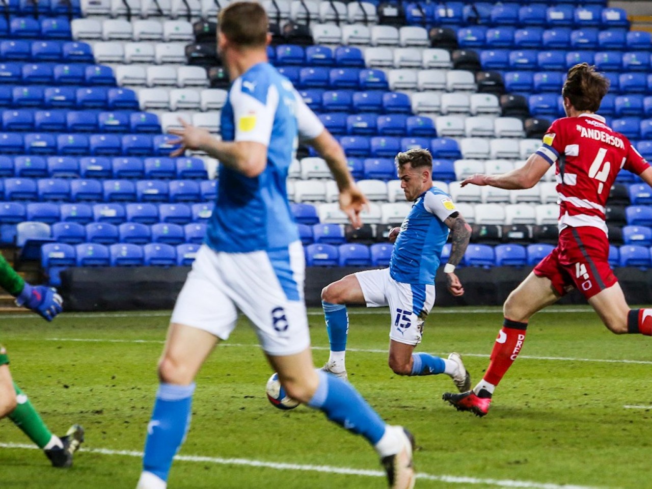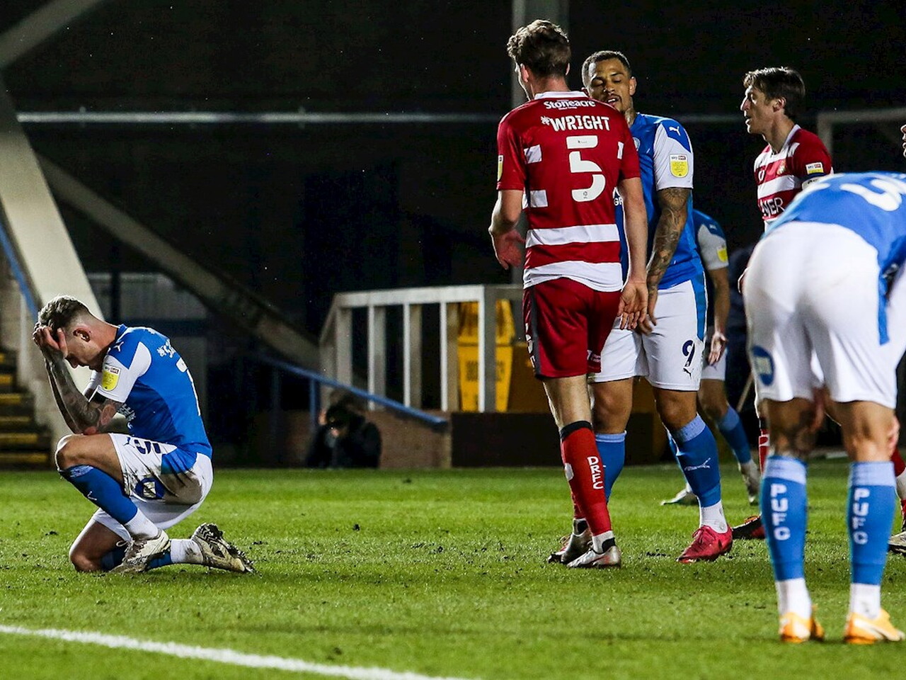 Match pictures from the Sky Bet League One fixture against Doncaster Rovers at the Weston Homes Stadium, Tuesday 27th April 2021.