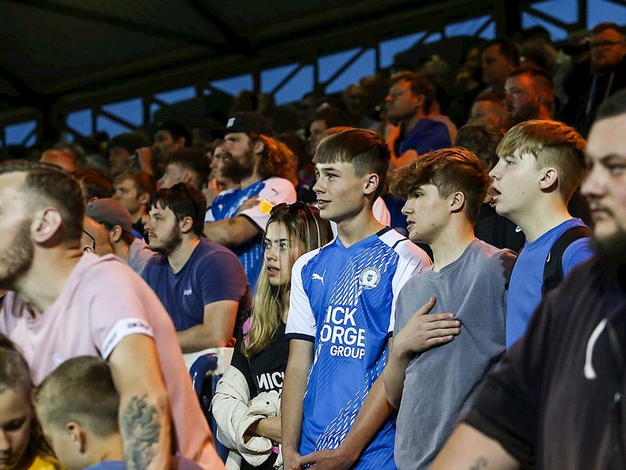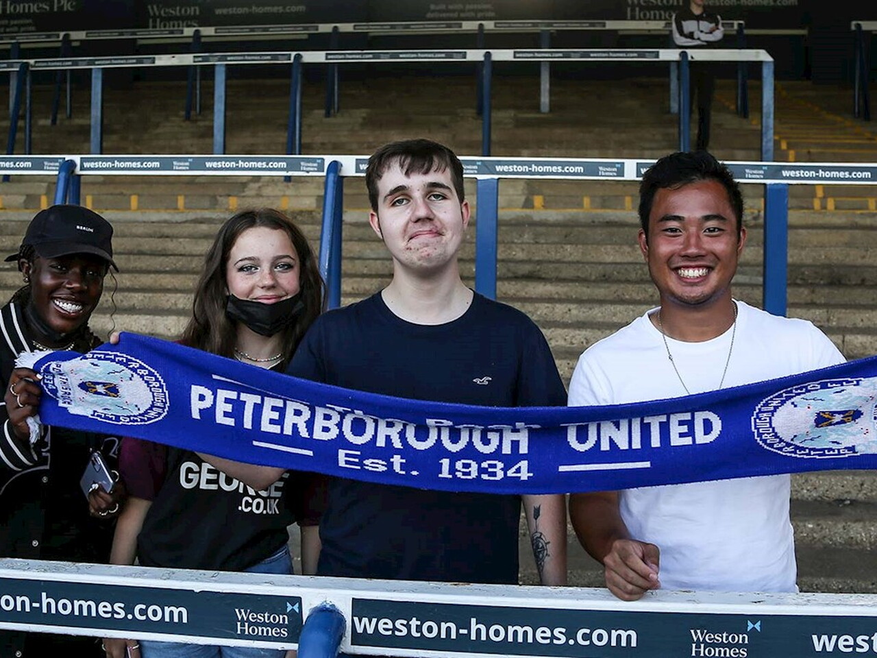 Pictures of Peterborough United supporters in attendance at the Carabao Cup First Round match against Plymouth Argyle at the Weston Homes Stadium, Tuesday 10th August 2021.