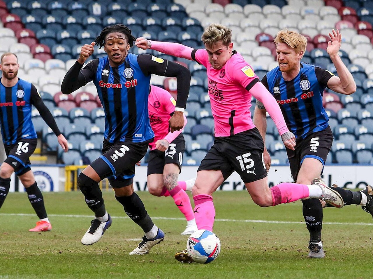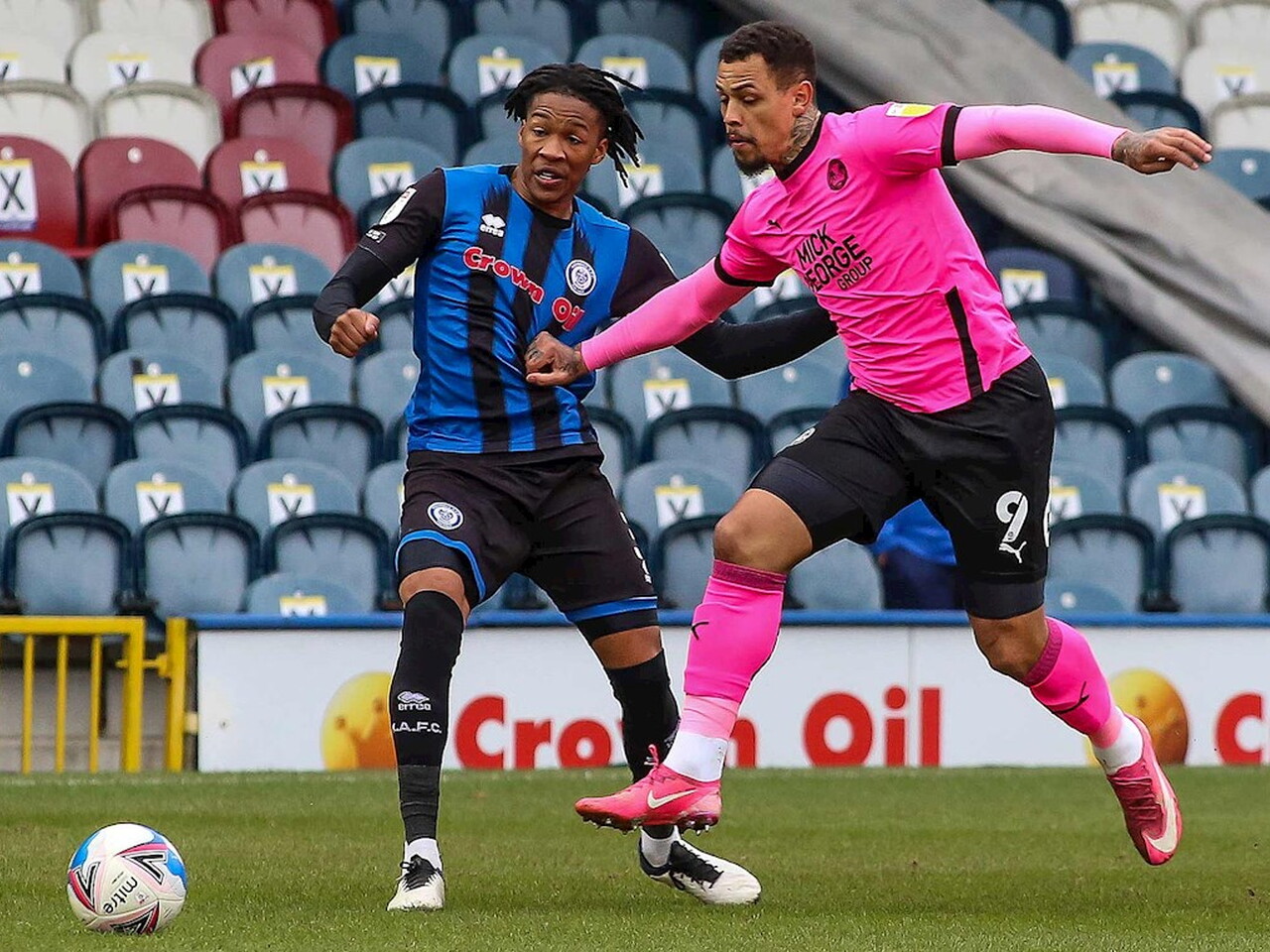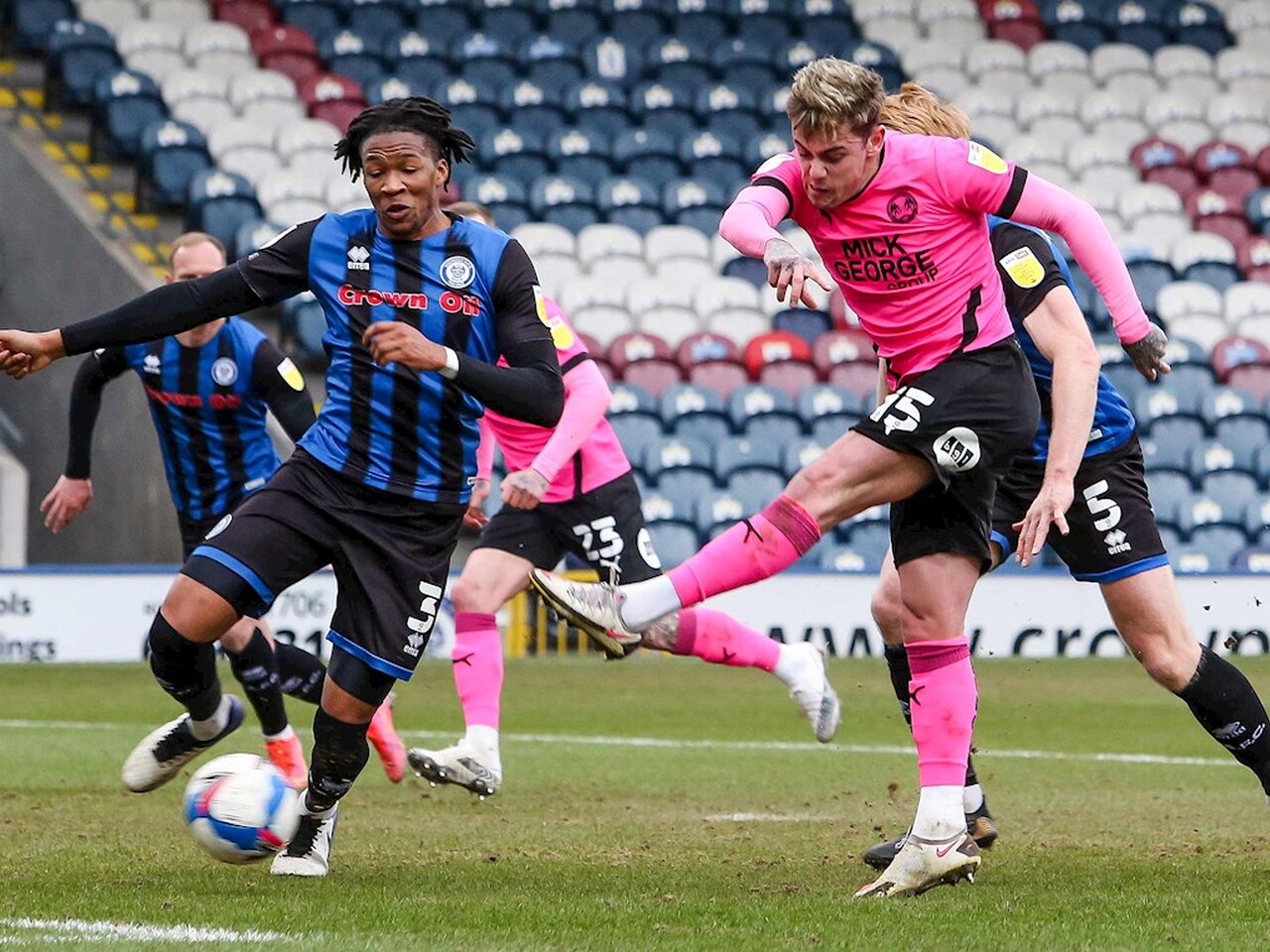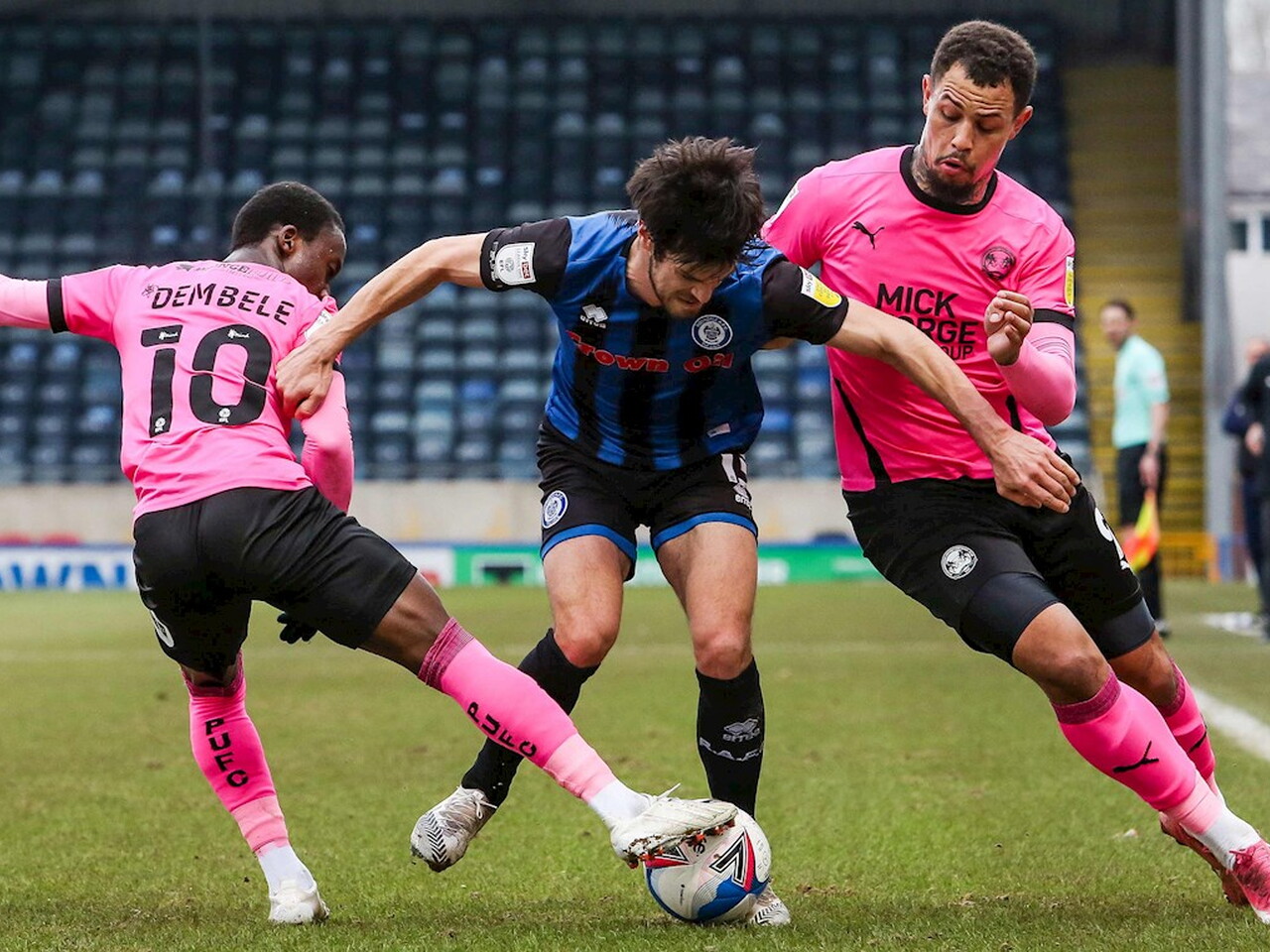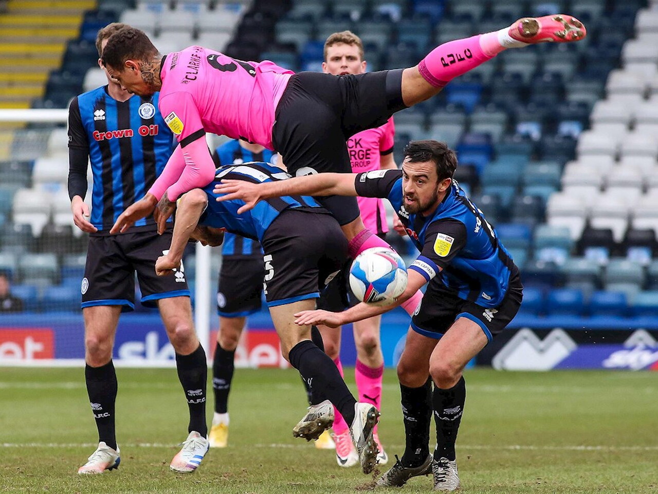 Match pictures from the Sky Bet League One fixture against Rochdale at the Crown Oil Arena, Saturday 20th March 2021.