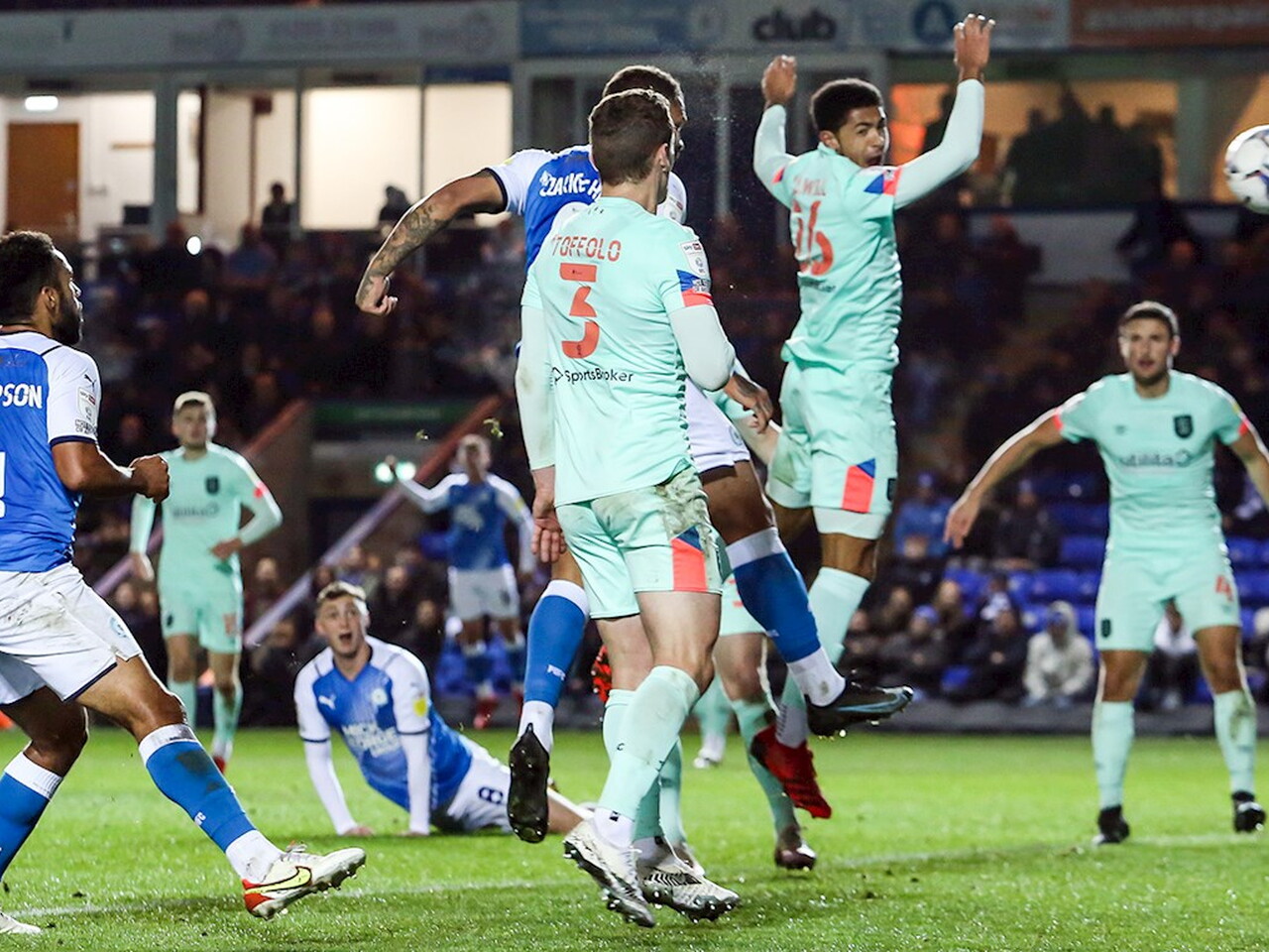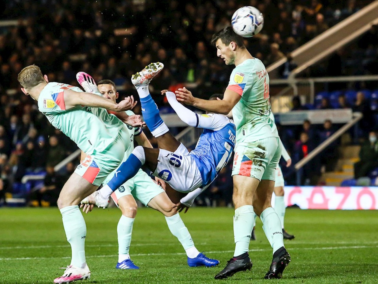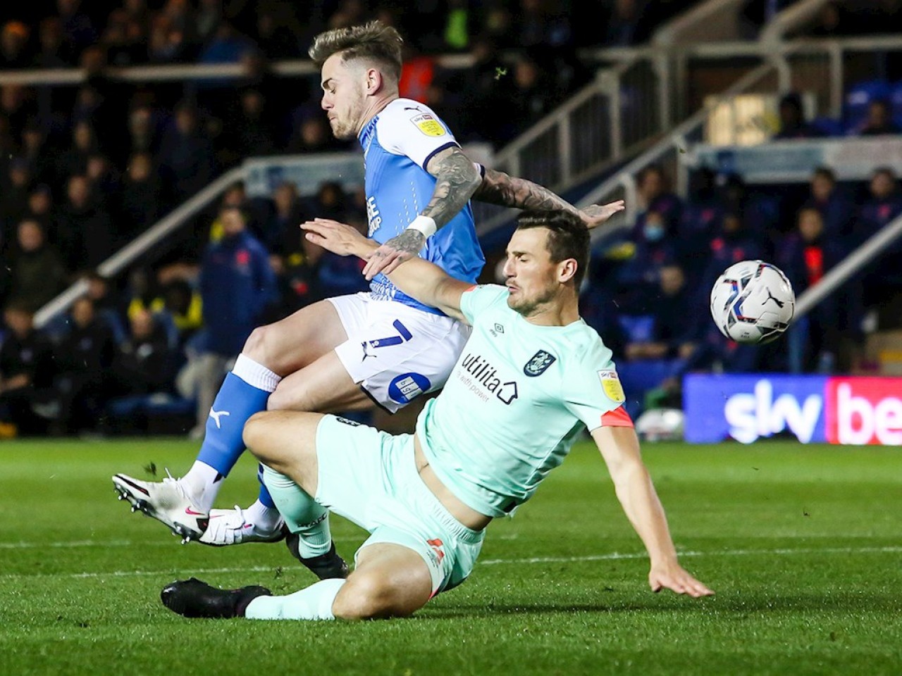 Match pictures from the Sky Bet Championship fixture against Huddersfield Town at the Weston Homes Stadium, Tuesday 2nd November 2021.