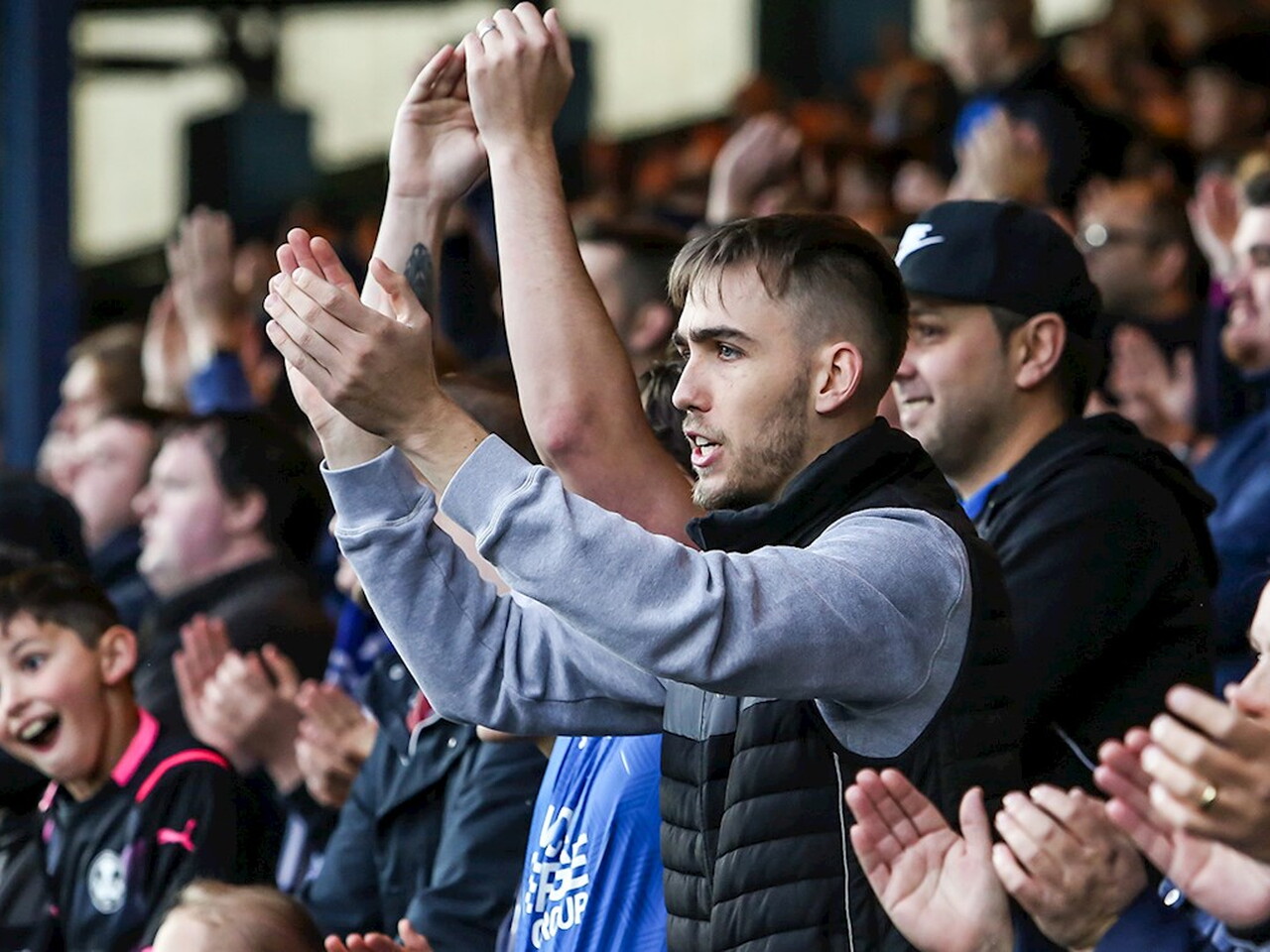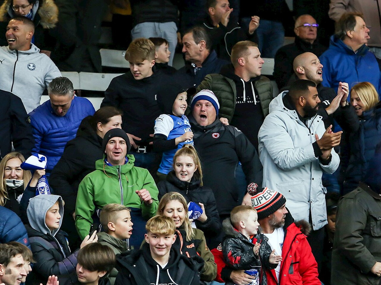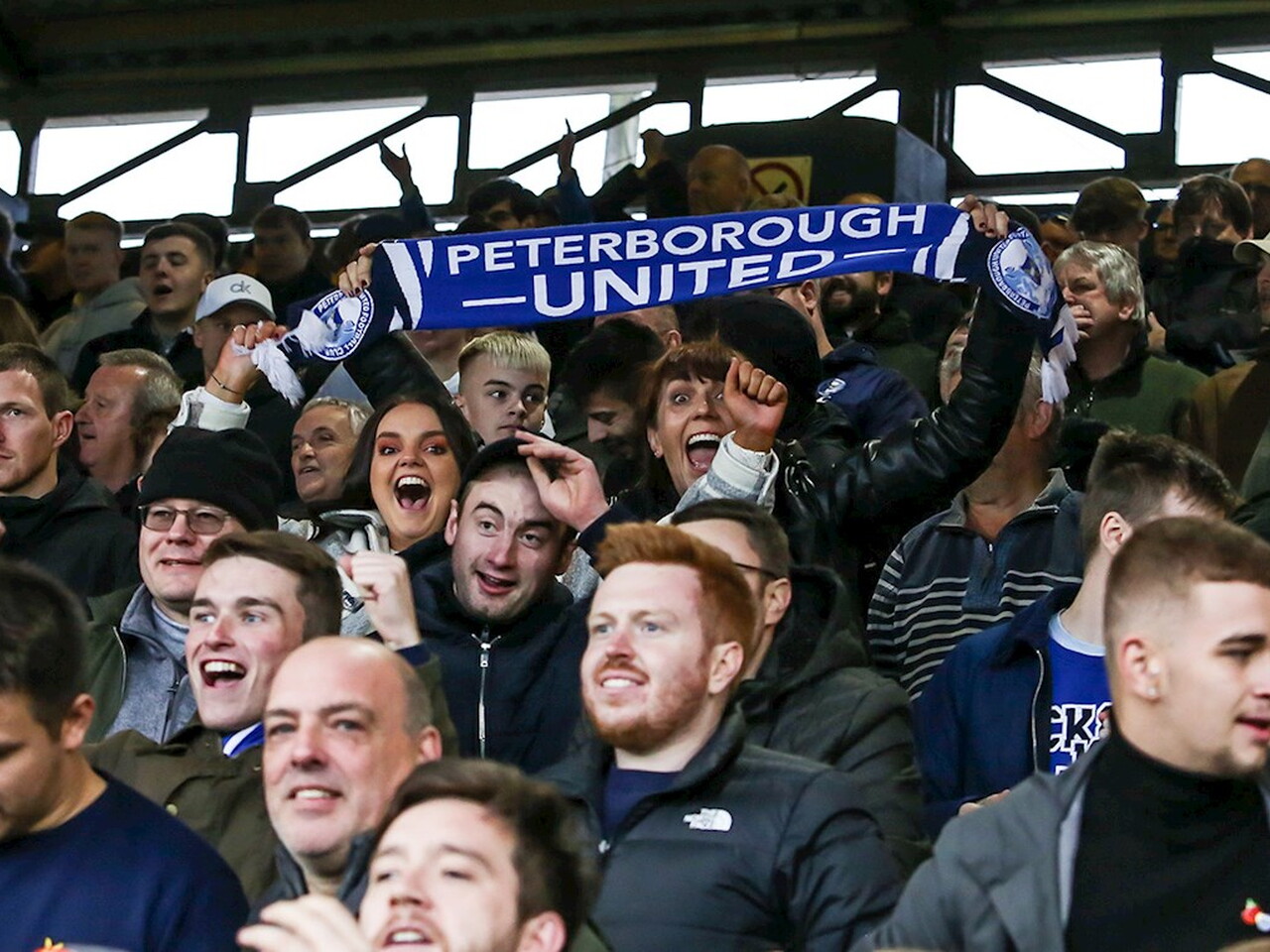 Pictures of Peterborough United supporters in attendance at the Sky Bet Championship match against Queens Park Rangers at the Weston Homes Stadium, Saturday 23rd October 2021.