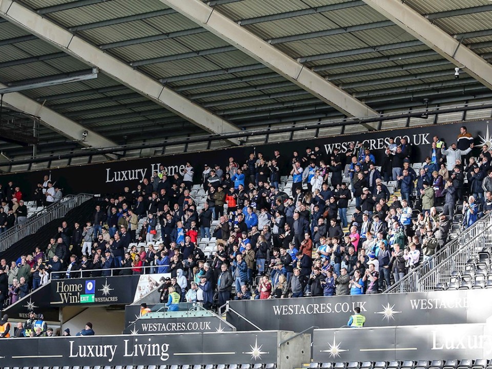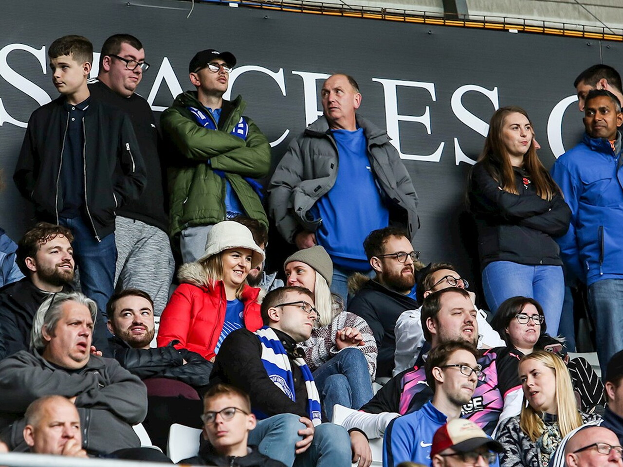 Pictures of Peterborough United supporters in attendance at the Sky Bet Championship match against Swansea City at the Swansea.com Stadium, Saturday 30th October 2021.